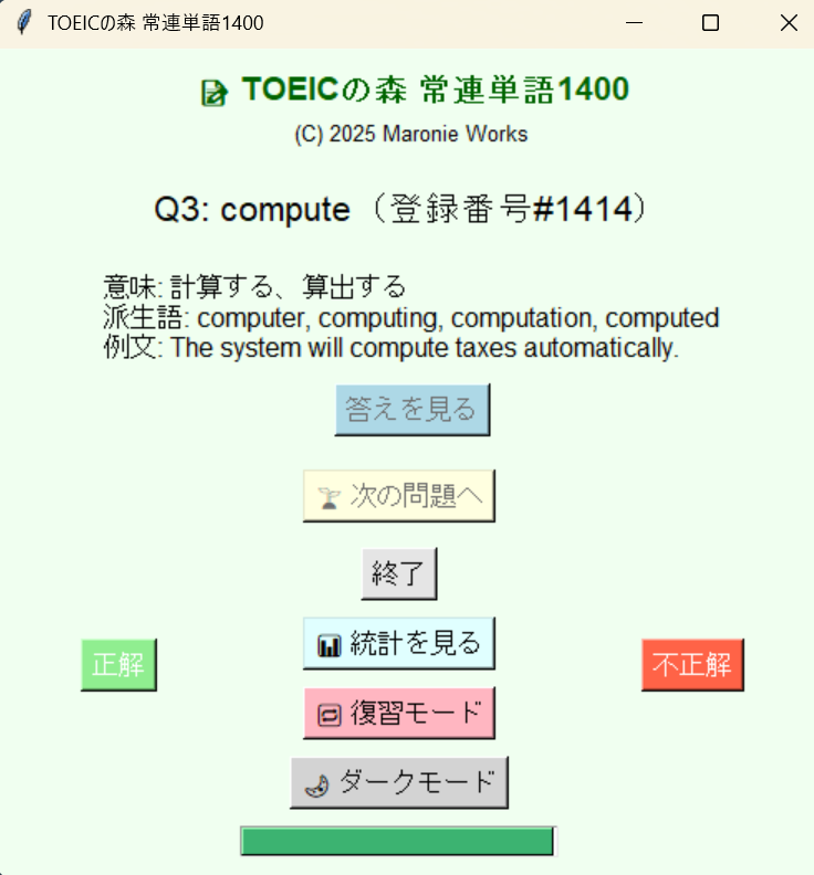 - 🔁 間違えた単語だけを復習できる「復習モード」