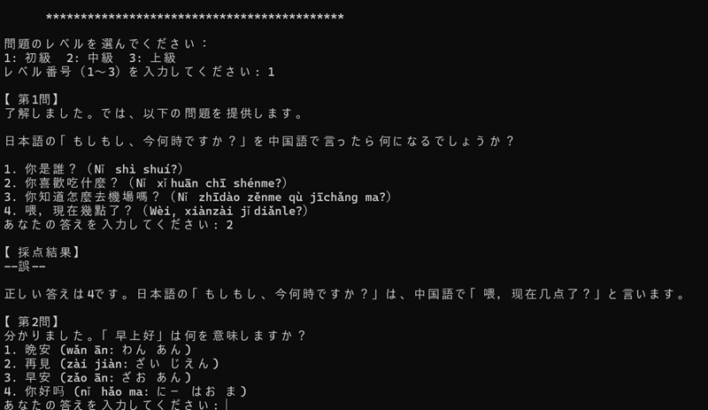 🎯 選択式でサクサク学習! 中国語の選択肢から答えを選ぶだけ。正解かどうかもすぐにわかって、理由も日本語で解説してくれるよ!